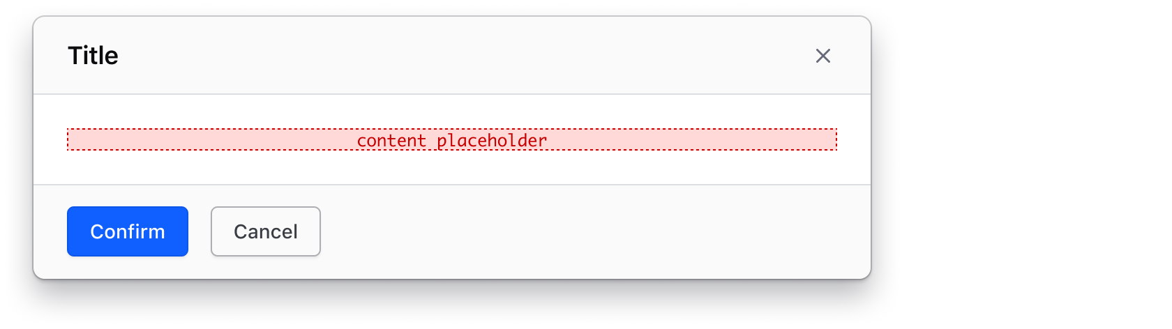 • A cancel or close button in the footer can also act as a way to dismiss the Modal, but doesn’t always function in the same way.